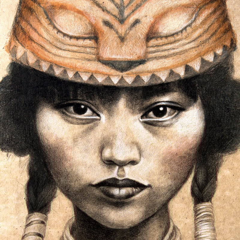 Dessin, encre, sur papier de chanvre marouflés sur toile de lin tendue sur châssis de 2 cm d'épaisseur.